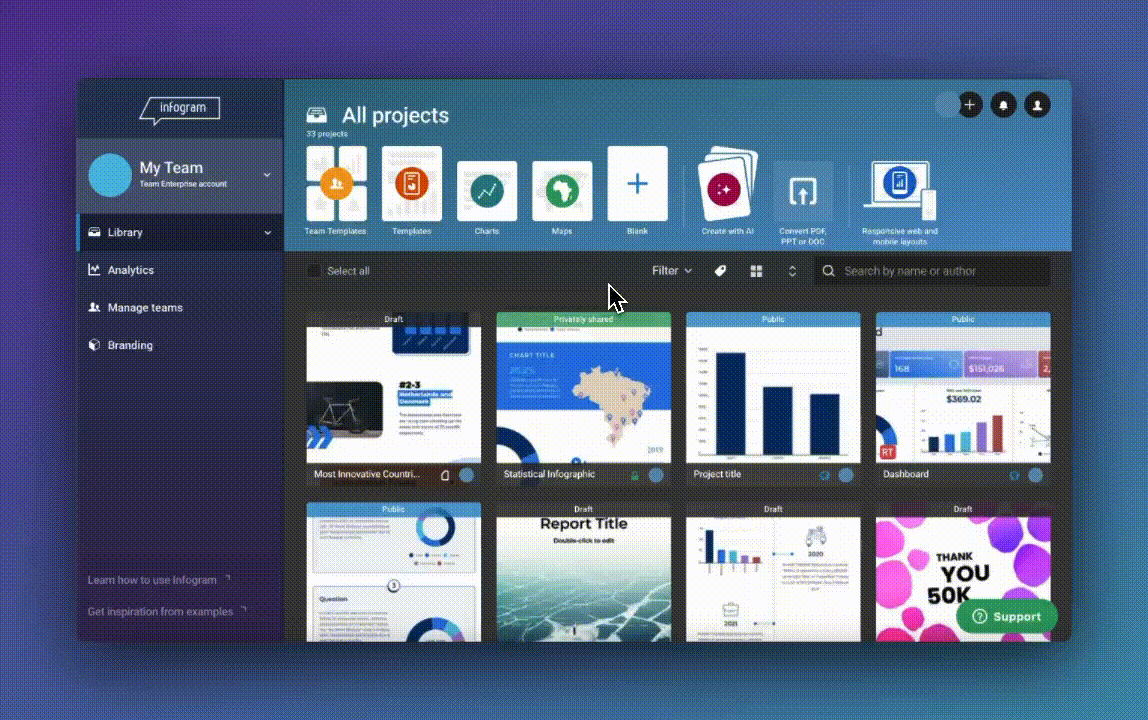- In the top left corner, enter your prompt - a topic or description of your infographic.