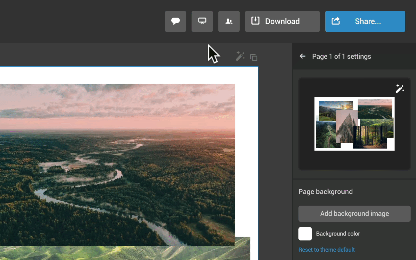 Para acceder a la alineación automática, haz clic en el icono de la varita en la esquina superior derecha de la página. También puedes acceder haciendo clic en la miniatura de Alineación automática en el panel de configuración del lado derecho.